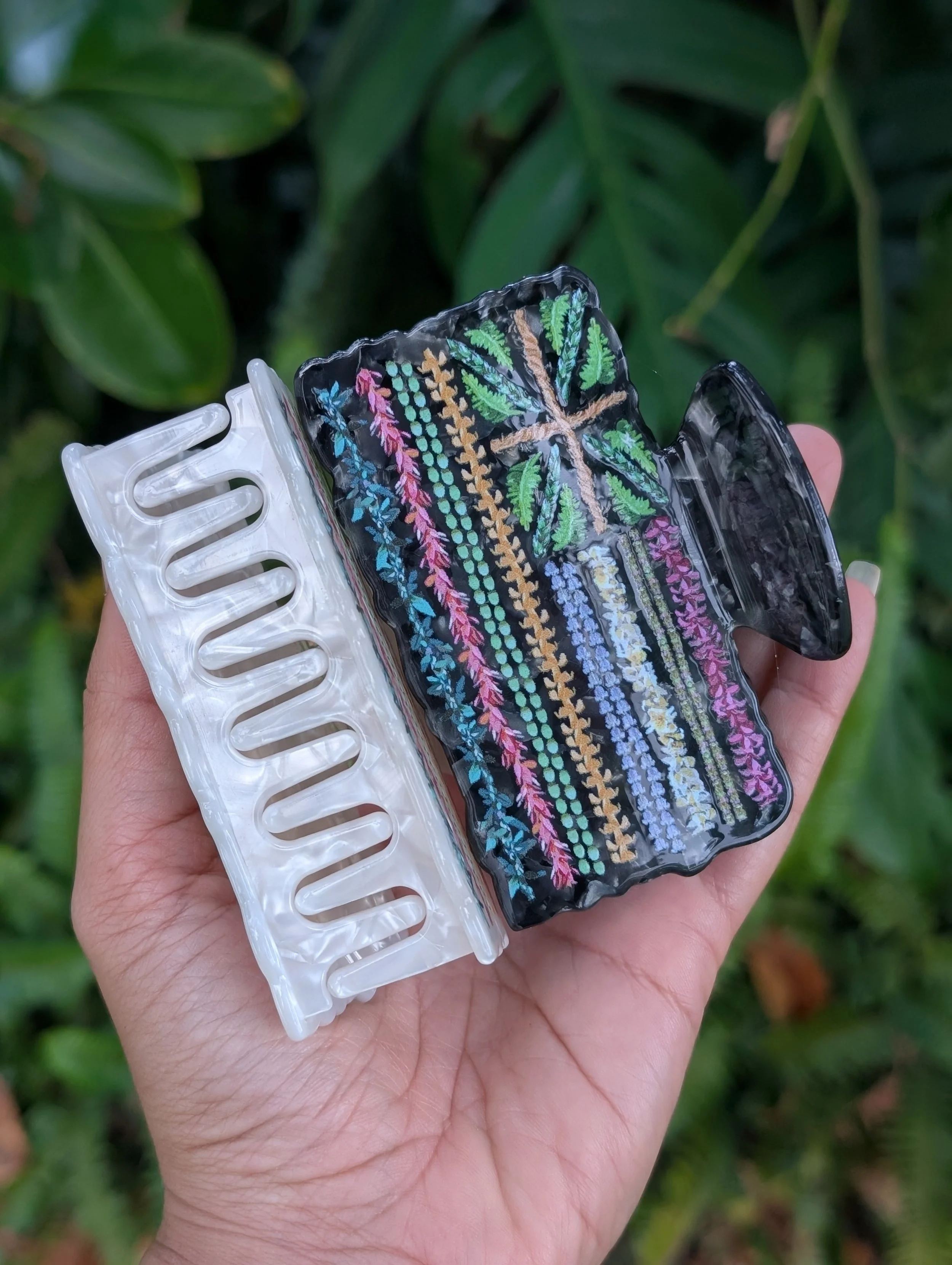 Shop › Lei Hae Hair Claw Image 1 of 4 Image 2 of 4 Image 3 of 4 Image 4 of 4 Lei Hae Hair Claw $15.00 Chose between Black or White3.5in wide Free shipping and all sales are finalMahalo for supporting your local lei makers! Color: Black White Quantity: Add To Cart Added! Chose between Black or White3.5in wide Free shipping and all sales are finalMahalo for supporting your local lei makers!