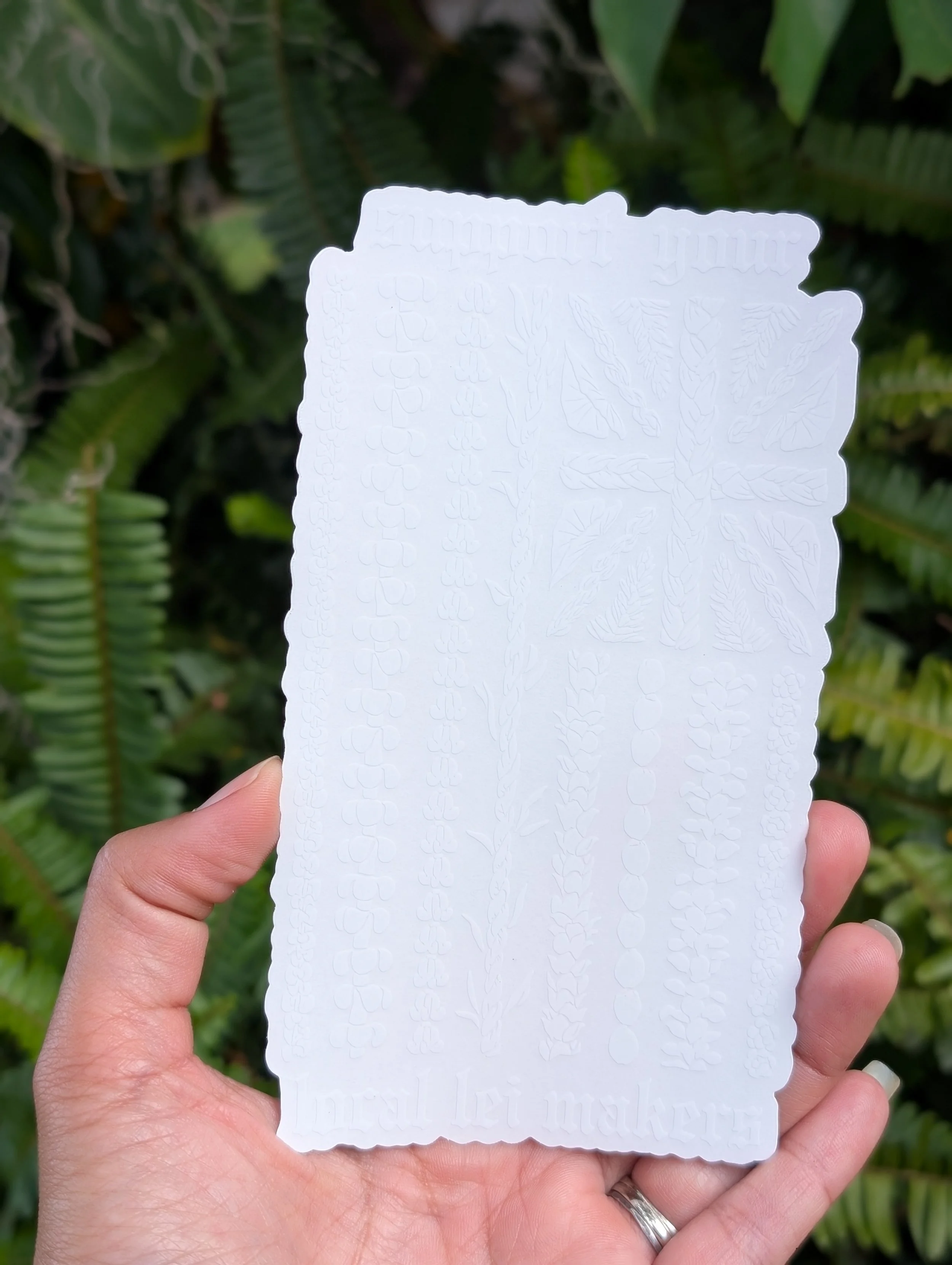 Shop › Support Your Local Lei Makers Pepili Image 1 of 3 Image 2 of 3 Image 3 of 3 Support Your Local Lei Makers Pepili $10.00 6in - Transparent Background - WeatherproofFree Shipping. All sales final. Mahalo for supporting your local lei makers! Quantity: Add To Cart Added! 6in - Transparent Background - WeatherproofFree Shipping. All sales final. Mahalo for supporting your local lei makers!